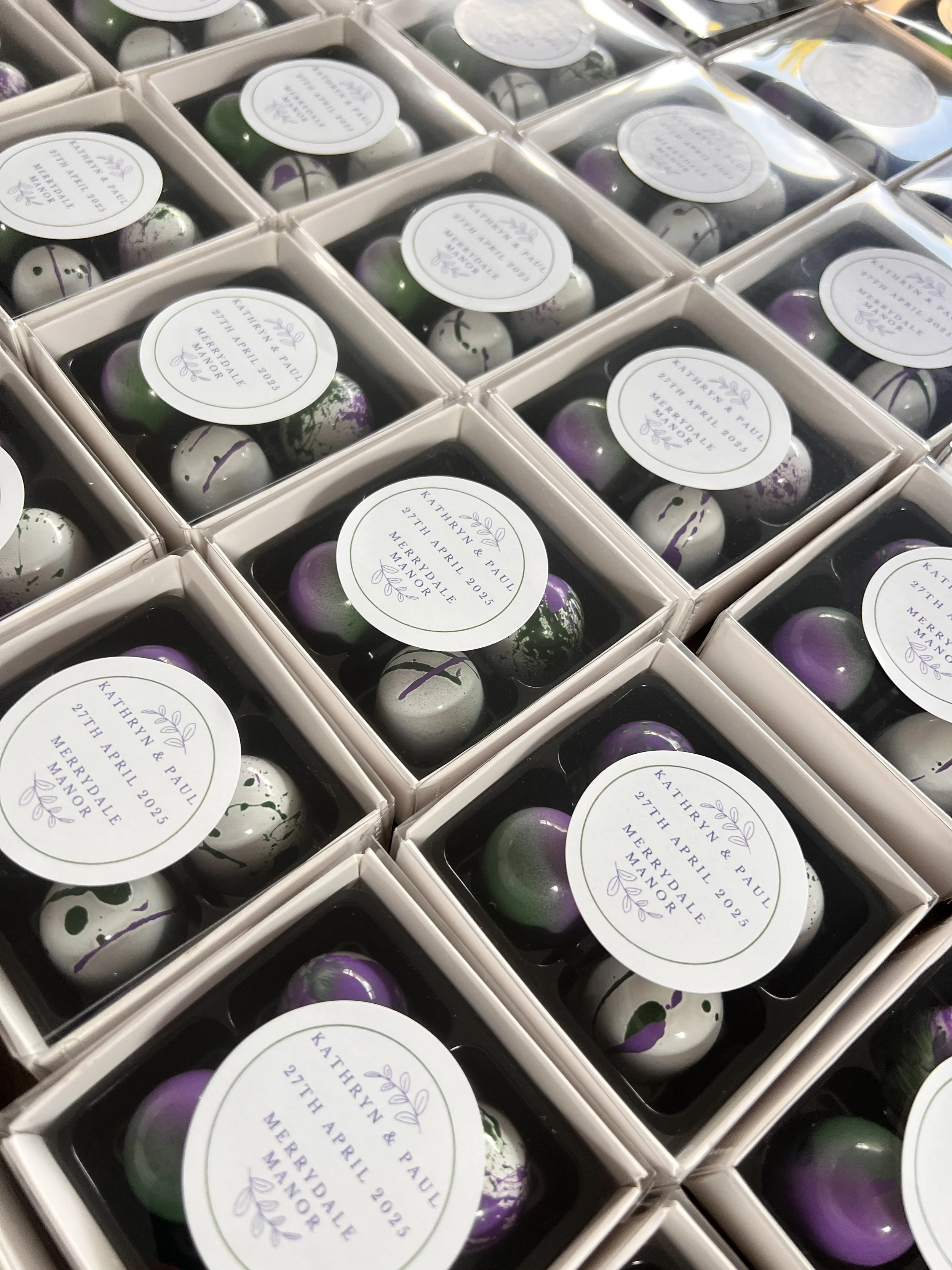 Create a lasting impression with personalised chocolate wedding favours. Each element of the design can be tailored around your individual requirements and colour scheme of the day.